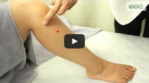 ひざにある皿(膝蓋骨)の下の外側の「犢鼻」から、親指の幅三本下がったところにあります。
