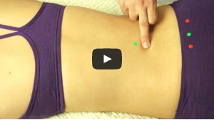 仙骨部をさすったときに、一番上に触れるくぼみ(第一後仙骨孔)と同じ高さで、仙骨の真ん中の隆起(正中仙骨稜)したところから親指の幅で一本半分外側にあります。仙骨部のくぼみは、ひざをかかえ、背中をまるめて腰から下をさわると、その様子がわかります。