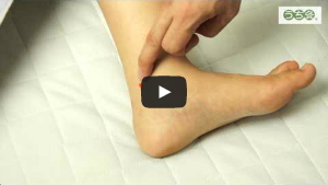 内くるぶし(内果尖)の後ろ下、内果尖とアキレス腱の間のくぼみで、アキレス腱付着部の内前方のくぼみにあります。